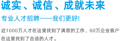 優(yōu)質的服務源于對產品的執(zhí)著,英才網(wǎng)聯(lián)一直走在專業(yè)人才招聘的服務前沿,以傳統(tǒng)網(wǎng)絡招聘與移動互聯(lián)相結合的方式重新定義“互聯(lián)網(wǎng)+招聘”的模式,以大數(shù)據(jù)信息化處理人與崗位的匹配關系。我們相信,真正的服務最終是人的服務,服務在人,成事在心!英才網(wǎng)聯(lián)愿與您攜手同心,共創(chuàng)輝煌。